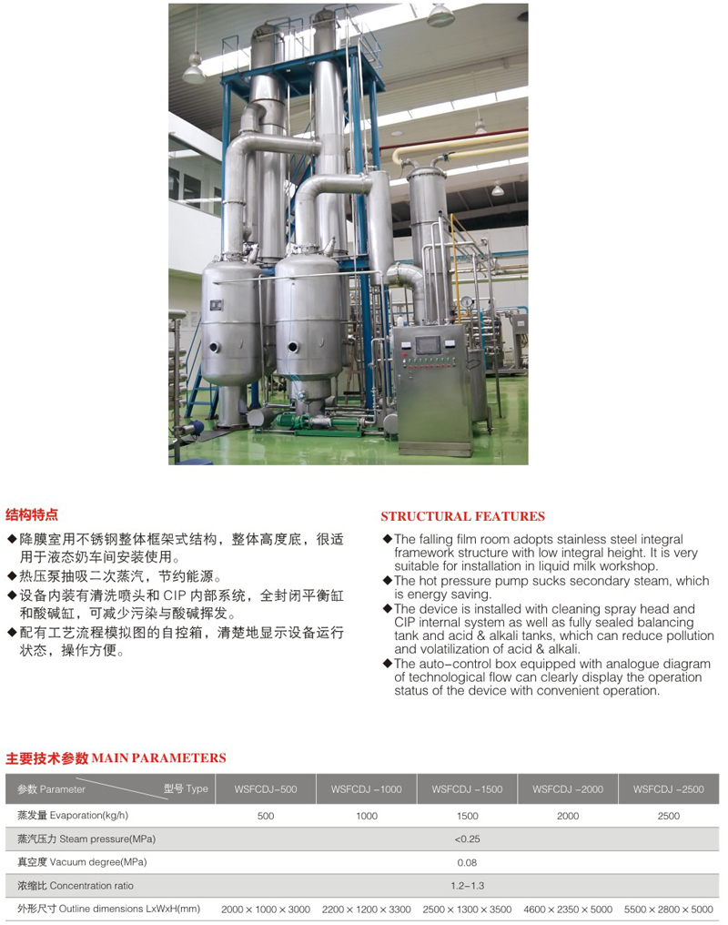 Single-effect falling film evaporator