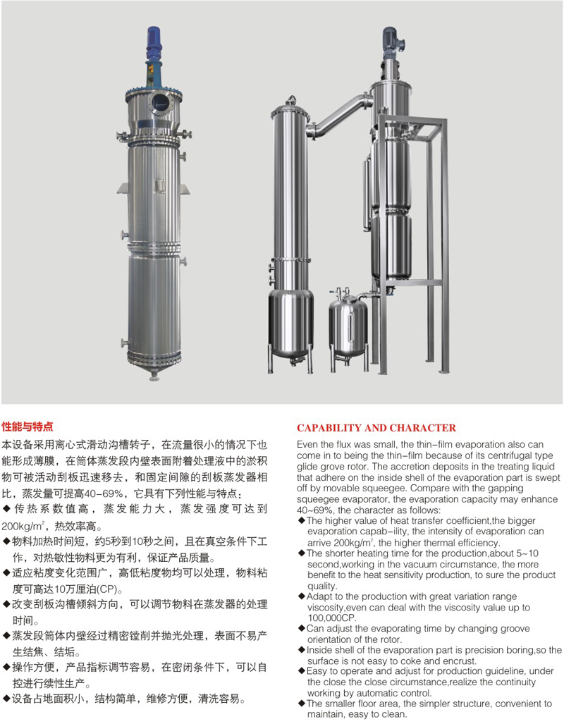 Centrifugal scraper film evaporator
